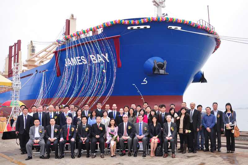 儀式上,公司副總經(jīng)理李勝先生、中航技廣州有限公司副總經(jīng)理周向勤先生、太平洋航運有限公司董事兼首席財務總監(jiān)Andrew Broomhead 先生分別致辭,隨后JNS131船教母Louisa Paul 女士為這艘船命名為“JAMES BAY”號。