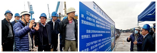 在南洋船塢邊上,林錫波邊走邊看,認(rèn)真聽取企業(yè)的介紹,深入了解企業(yè)的復(fù)工復(fù)產(chǎn)和企業(yè)基本運(yùn)營狀況,他感謝南洋多年來對新會經(jīng)濟(jì)發(fā)展作出的積極貢獻(xiàn),鼓勵南洋努力開拓市場,進(jìn)一步做優(yōu)做強(qiáng),為新會經(jīng)濟(jì)作出更大貢獻(xiàn)。