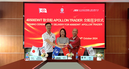 2024年10月24日,公司為日本Nisshin船東建造的"APOLLON TRADER"號順利交付。